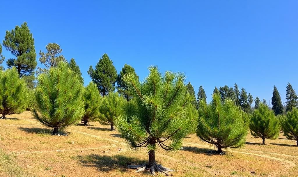 In plantation forestry, P. kesiya has demonstrated value at elevations between 800-1,200 meters in tropical Africa, with mean annual increments of 10-30 m³/ha and maximum annual increments reaching 40 m³/ha at age 18 on good sites in Zambia[2]. However, its comparative advantage varies with elevation - below 800 m, Pinus caribaea and P. oocarpa generally provide higher yields, while above 1,200 m, P. patula often outperforms P. kesiya[2]. These patterns inform species selection decisions in commercial forestry operations.